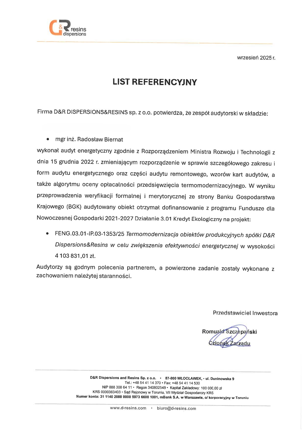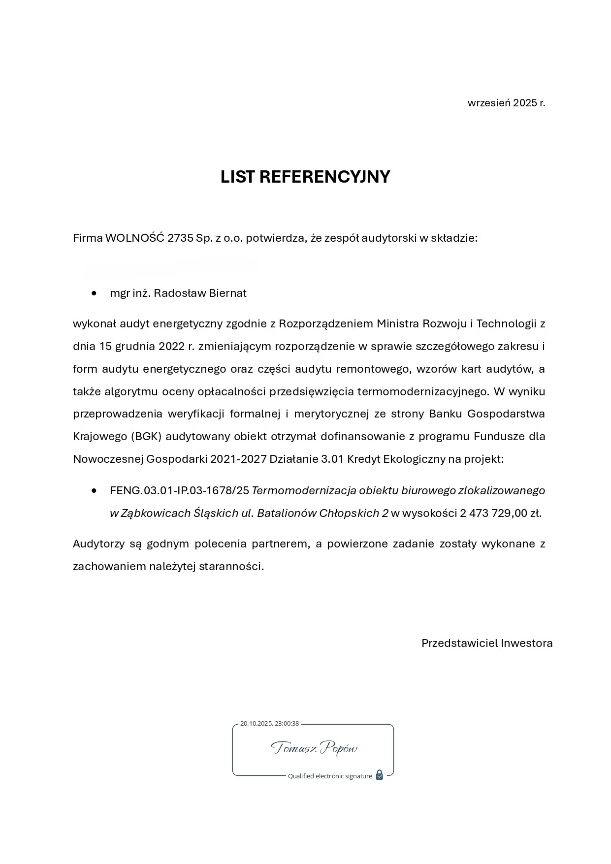 Audyt remontowy → opracowanie techniczno-ekonomiczne wskazujące optymalny wariant działań zmniejszających zużycie energii oraz prac o charakterze remontowym